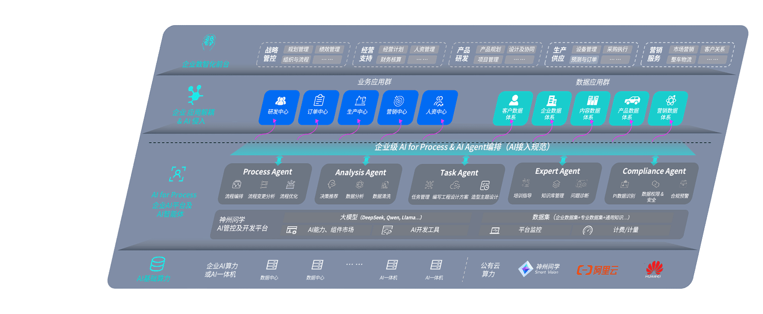 端到端的一站式AI工作空间深度融合了从企业战略规划到日常经营的全流程业务板块,,,定向解决车企内部领域多、、、、部门多、、、链条长、、、场景碎片化等难题,,支持车企快速构建以AI为核心的生产力写作体系,,,,实现任务执行与AI能力的无缝集成与交互